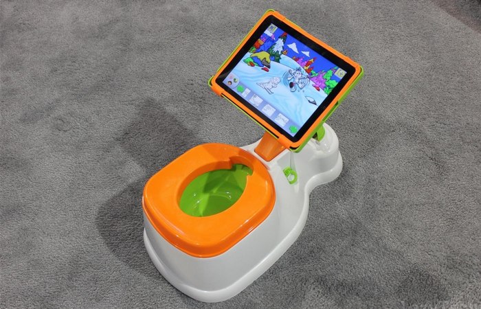 Почему бы не объединить это все в единое целое с помощью iPotty. Данное устройство позволяет малышу «не скучать» на горшке, параллельно занимаясь любимым делом. Осталось только уточнить, насколько чистым будет планшет после этого процесса.