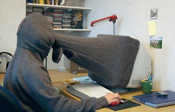 Конфиденциальность в Интернете — это наболевший вопрос. Возможно, кому-то хочется зайти на пикантные или очень личные веб-сайты в общественном месте или на работе. Почему бы не сделать это, полностью закрыв экран и свое лицо от посторонних с помощью специального шарфа. Да, это выглядит немного странно и откровенно жутко, но по крайней мере никто не может увидеть, что человек просматривает на экране.